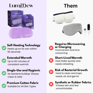 - STEAM THERAPY FOR PUFFINESS, FATIGUE, AND FLAKY LIDS: Experience spa-quality steam therapy that soothes puffiness, redness, digital fatigue, and flaky eyelids. This mask supports cornea care and fits easily into your daily routine. It provides gentle comfort like artificial tears eye drops and promotes clear eyes with lasting redness relief.